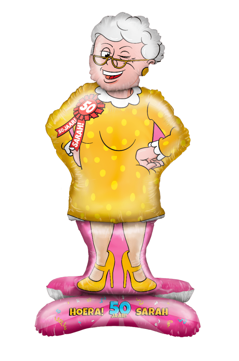 Gør 50-års fødselsdagen ekstra festlig med denne iøjnefaldende folieballondukke Sarah 50. Takket være den kompakte størrelse er ballonen nem at puste op, sætte ned eller hænge op uden besvær. Perfekt som dekoration til en Sarah & Abraham-fest.
