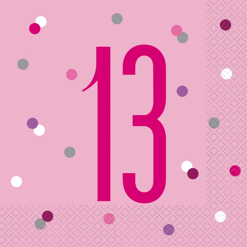 Servietter 13 år Pink 33cm 16stk