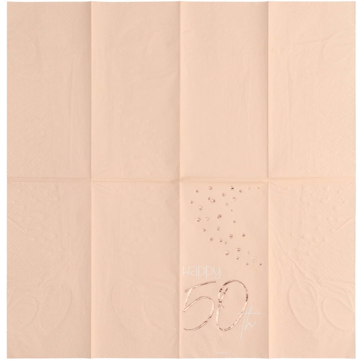 Servietter Elegant Lush Blush 50 Years 33x33cm - 10 stk. Indhold: 10 servietter 33x33cm. Farve: Pink. Kan f.eks. bruges til følgende fester/anledninger: Fødselsdag, jubilæum. En serviet er 33x33cm i størrelse. Artiklen er lavet af papir.