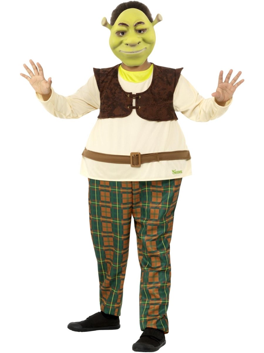 Lad dit barn forvandle sig til den elskede trold fra filmen Shrek med dette officielle Shrek Kids Deluxe-kostume. Perfekt til halloween, temafester eller udklædning.