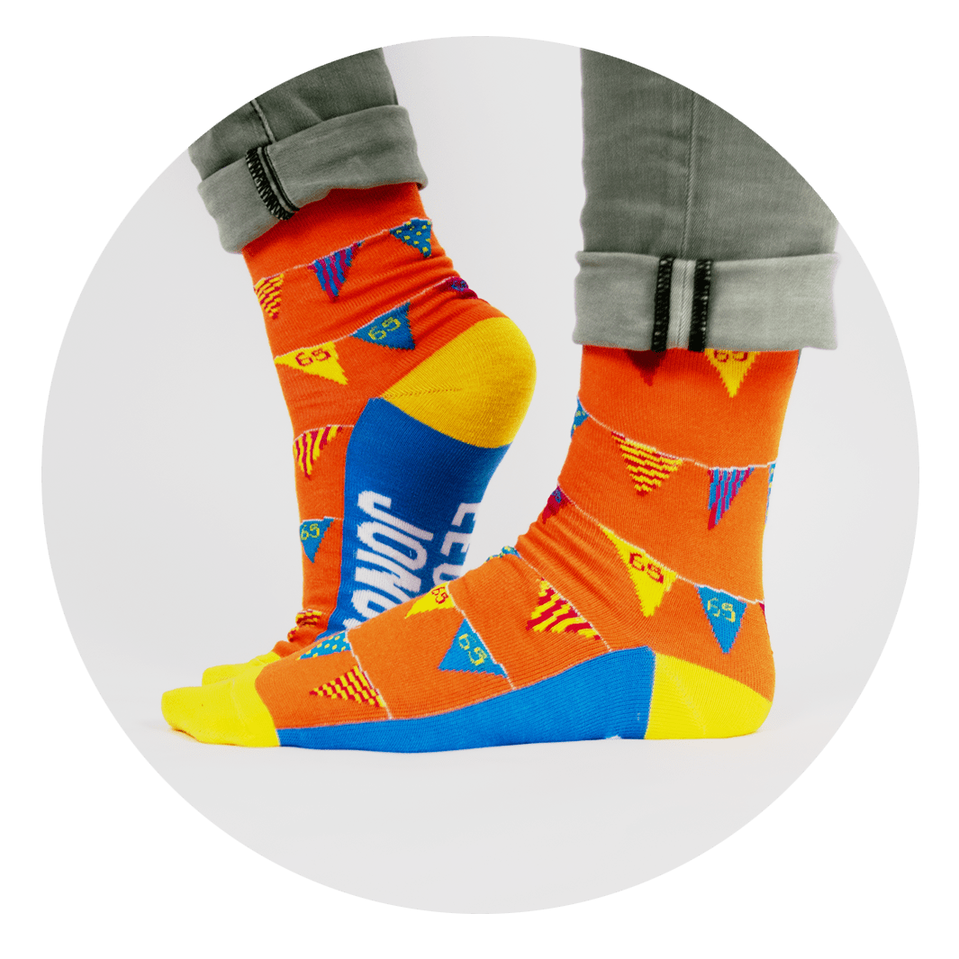 Pakkens indhold:Sjove sokker 65 års flag 1 par