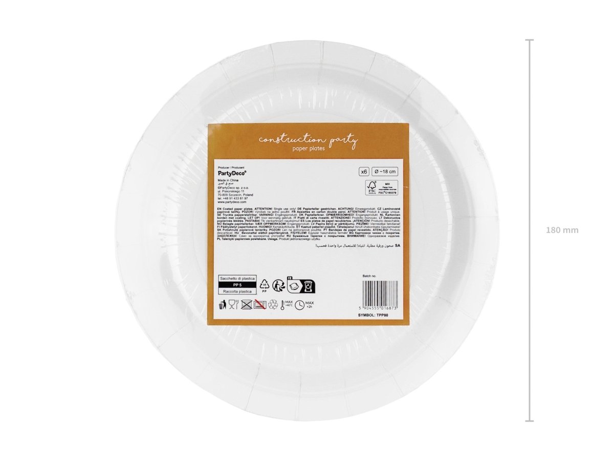 Paptallerkener Konstruktionskøretøjer, forskellige farver, størrelse ca. 18 x 18 cm