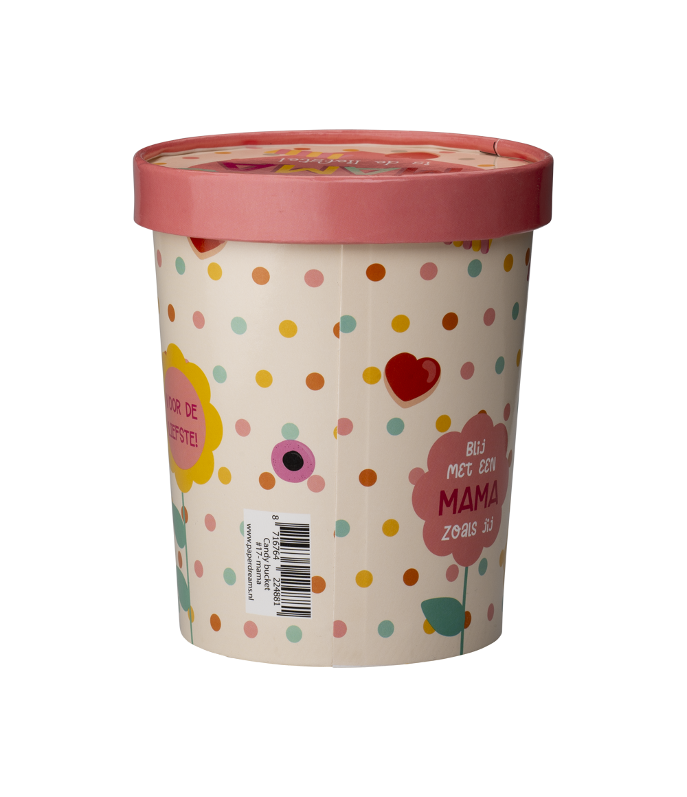 De muntre slikspande er et rigtigt blikfang i butikken. Blandt andet på grund af det sjove design er denne slikspand meget rar at få. Slikspandene er lavet af pap!