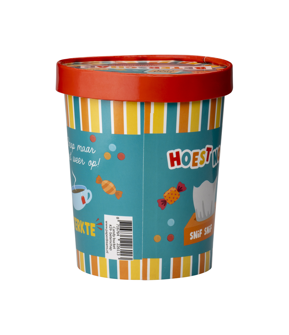 De muntre slikspande er et rigtigt blikfang i butikken. Blandt andet på grund af det sjove design er denne slikspand meget rar at få. Slikspandene er lavet af pap!