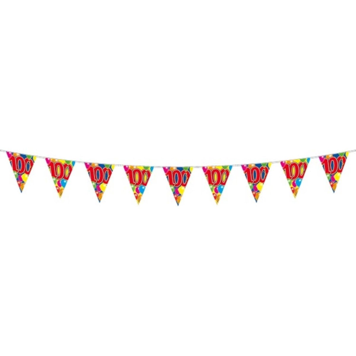 100 års slyngeballoner - 10 meter. Indhold: 1 flagline. Farve: Flerfarvet. Produkttema: Balloner. Kan f.eks. bruges til følgende fester/anledninger: fødselsdag. Denne guirlande er 10 meter lang. Artiklen er fremstillet af plast.