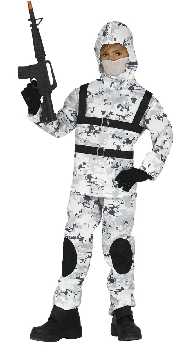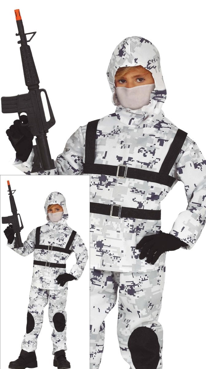Soldat kostume barn hvid grå