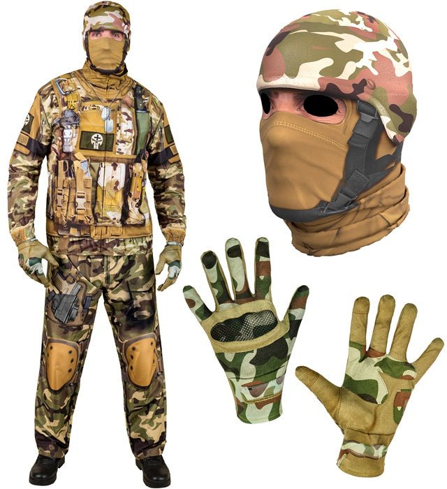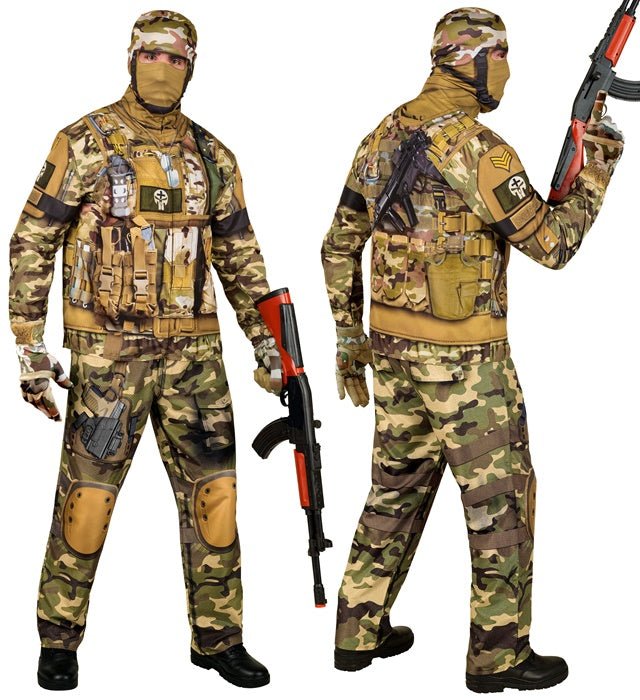 Giv den hele armen som soldat med dette komplette kostume til voksne. Perfekt til temafester, karneval eller udklædningsfester.