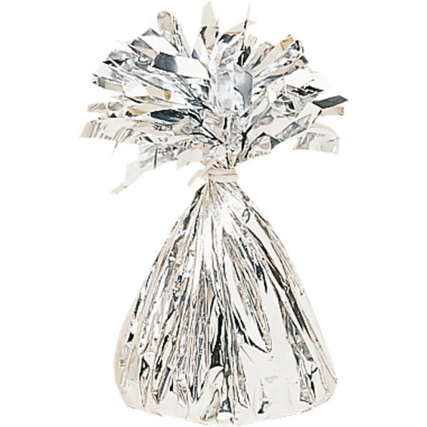 De kegleformede vægte er pakket ind i skinnende guldfolie og afsluttet med en fjer af folietråde. Fanen har en skjult løkke, som gør det nemt at fastgøre ballonerne sikkert. Bare sæt båndet eller rebet fast på vægten, så er du færdig!