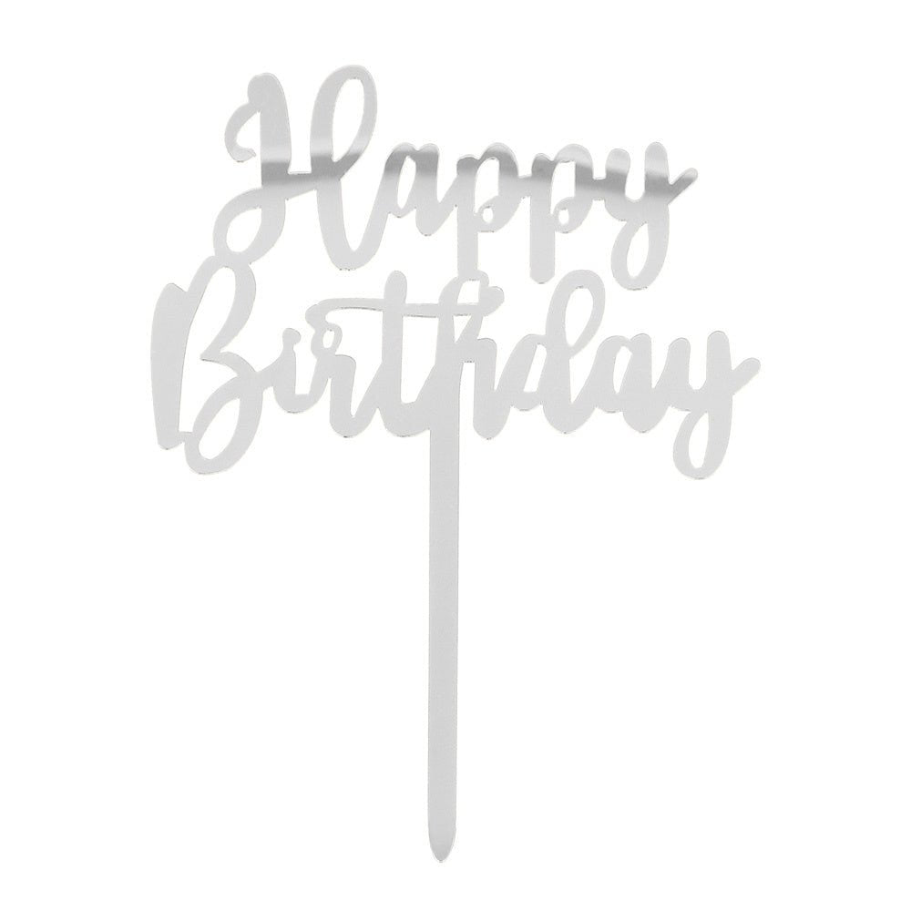 Sølv Happy Birthday Cake topper 15,5 cm