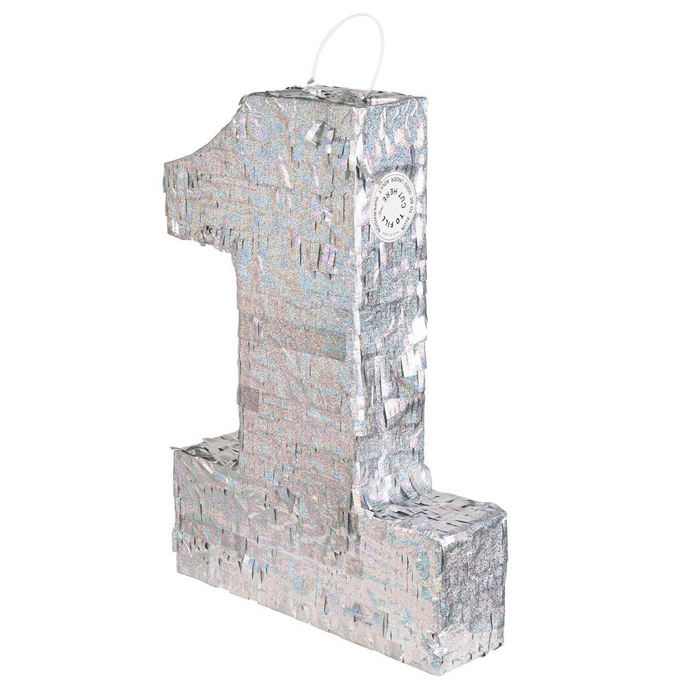 Sølv Pinata 1 år Holografisk 40cm