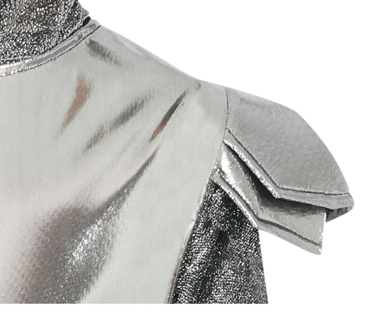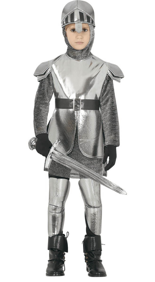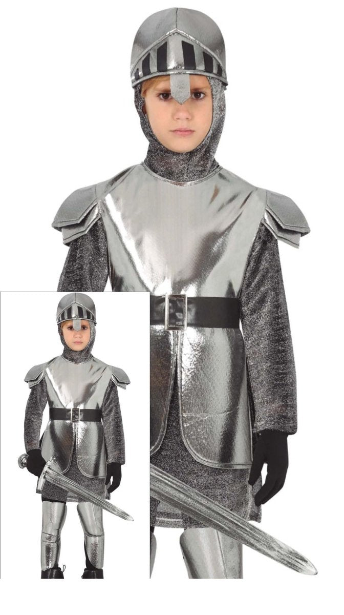 Indhold: hjelm, hætte, tunika med vest og skuldre, skinnebensbeskyttere
