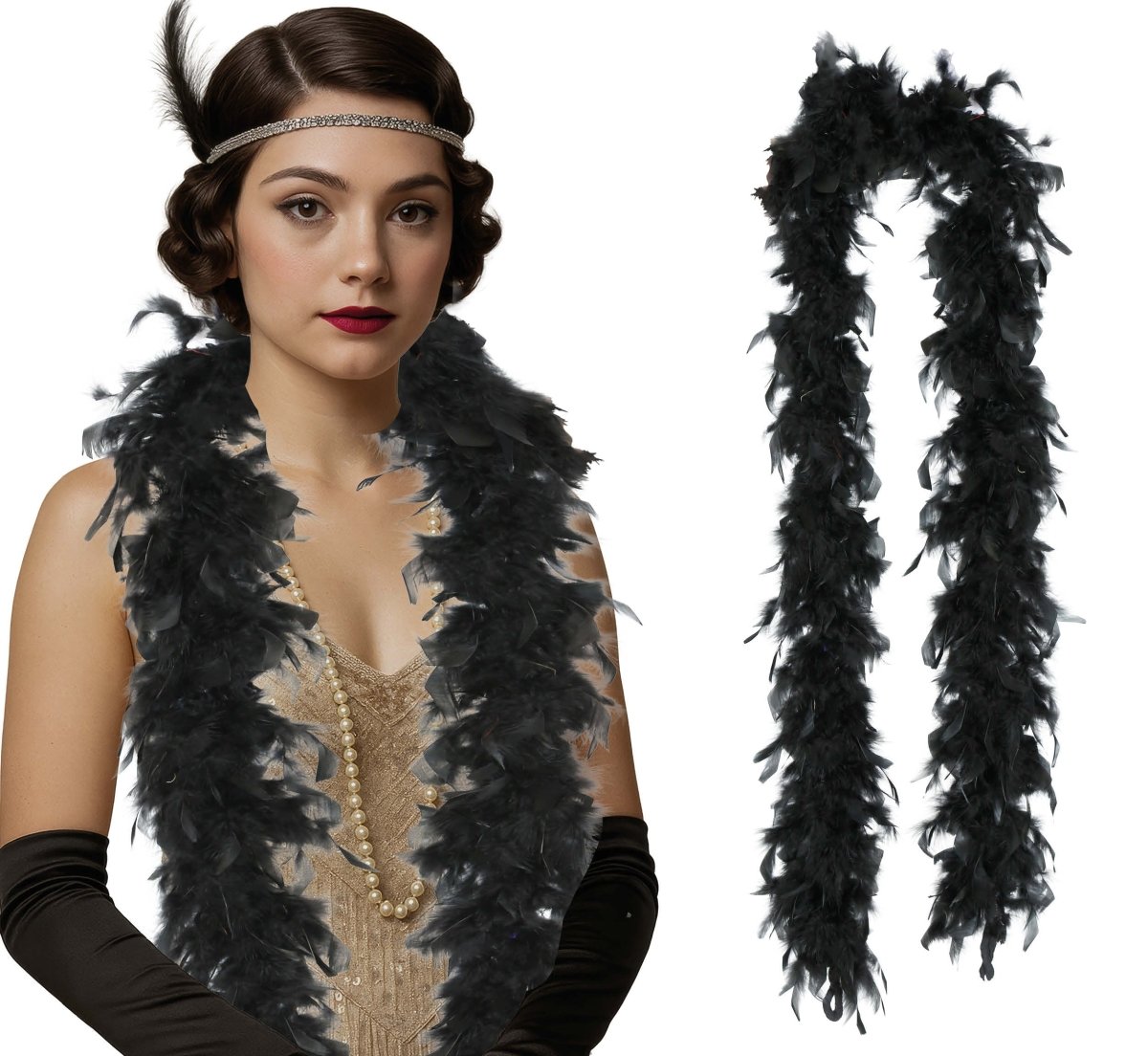 Tilføj stil og klasse til dit outfit med denne sorte fjerboa. Perfekt til fester, gallaer, temaaftener, karnevaler eller sceneoptræden. Boaen er let, blød og skaber øjeblikkeligt et elegant og festligt look.