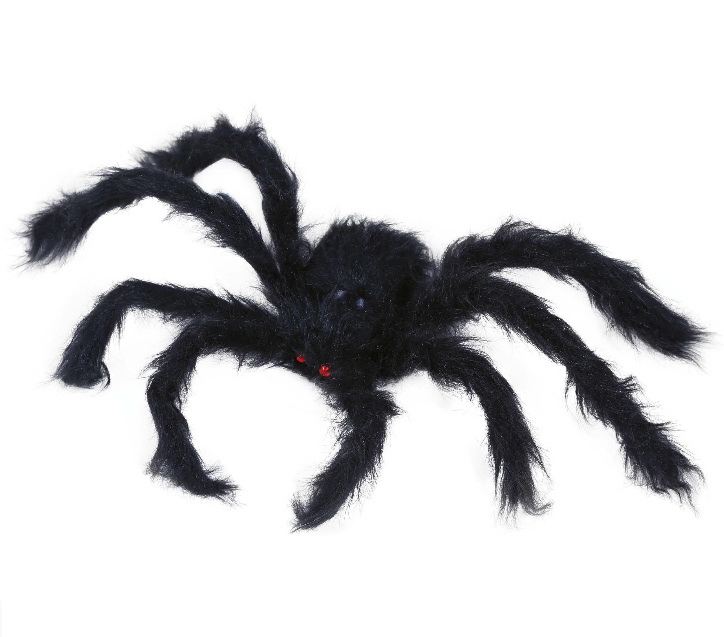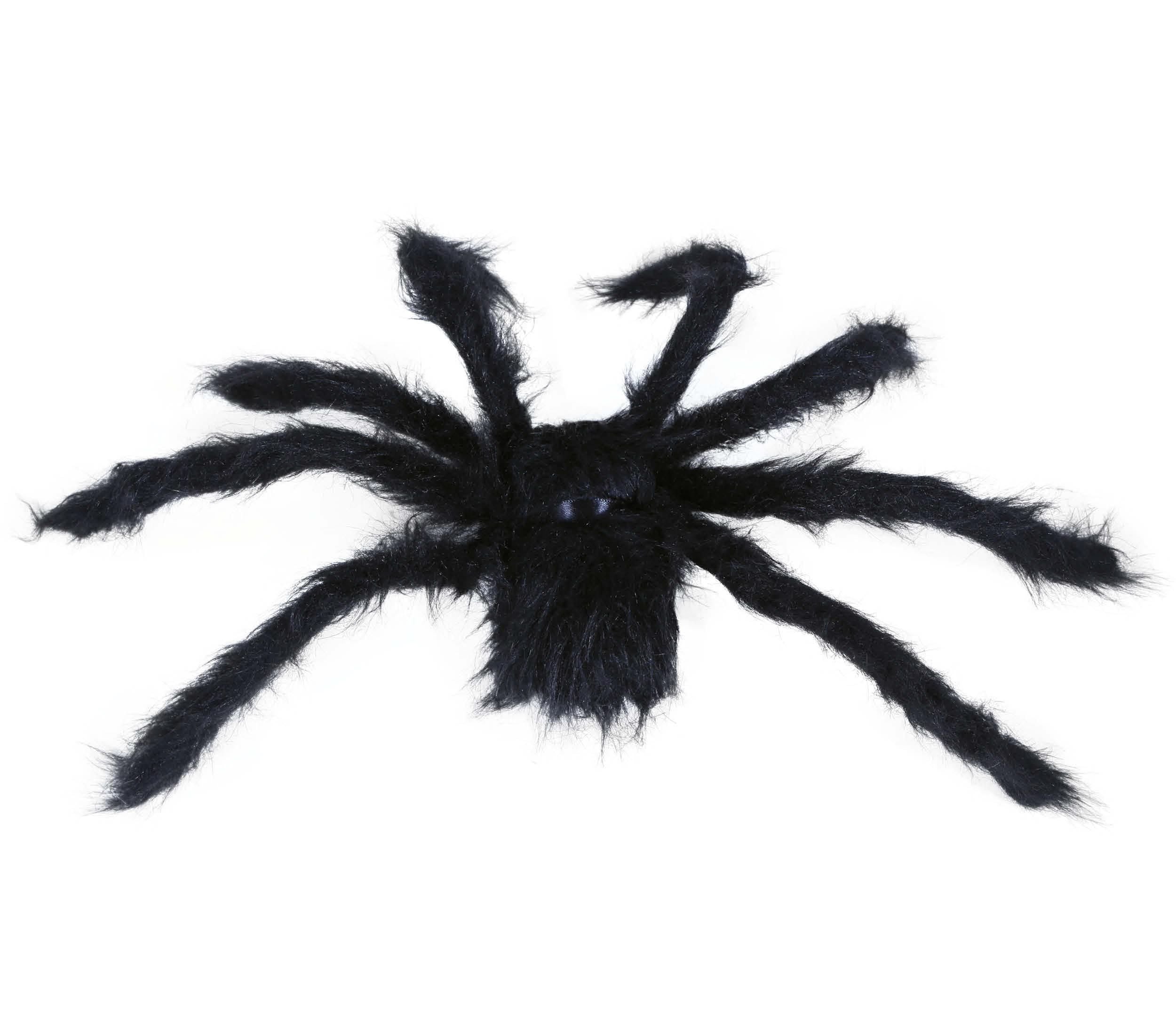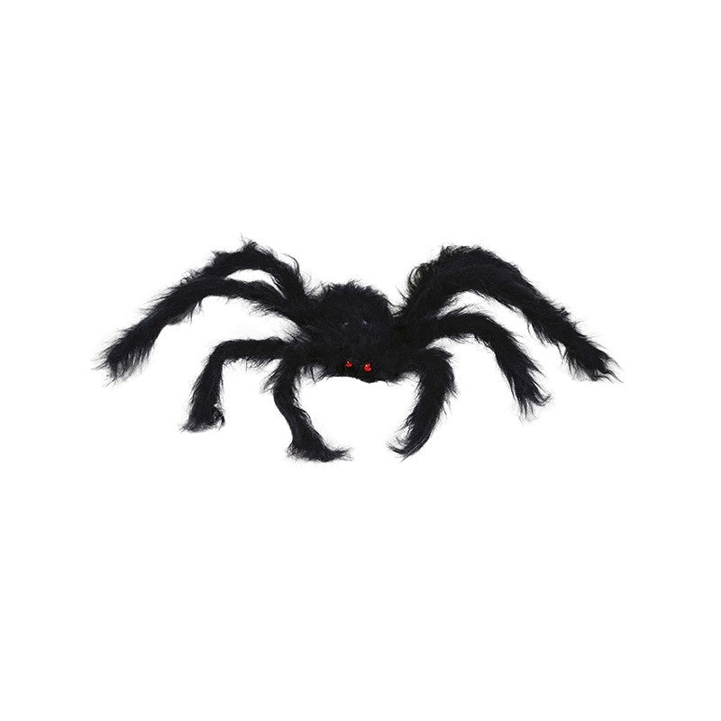 Sort edderkop med et loddent udseende, ideel til at dekorere et dystert og uhyggeligt miljø. Perfekt til din Halloween-fest.