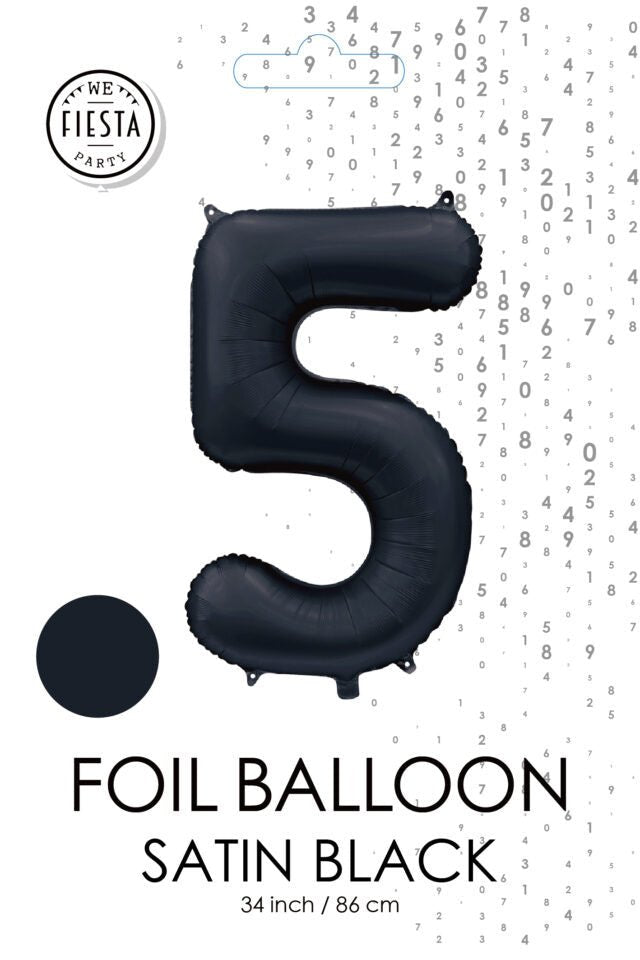 Sort figurballon 5 år glans 86 cm