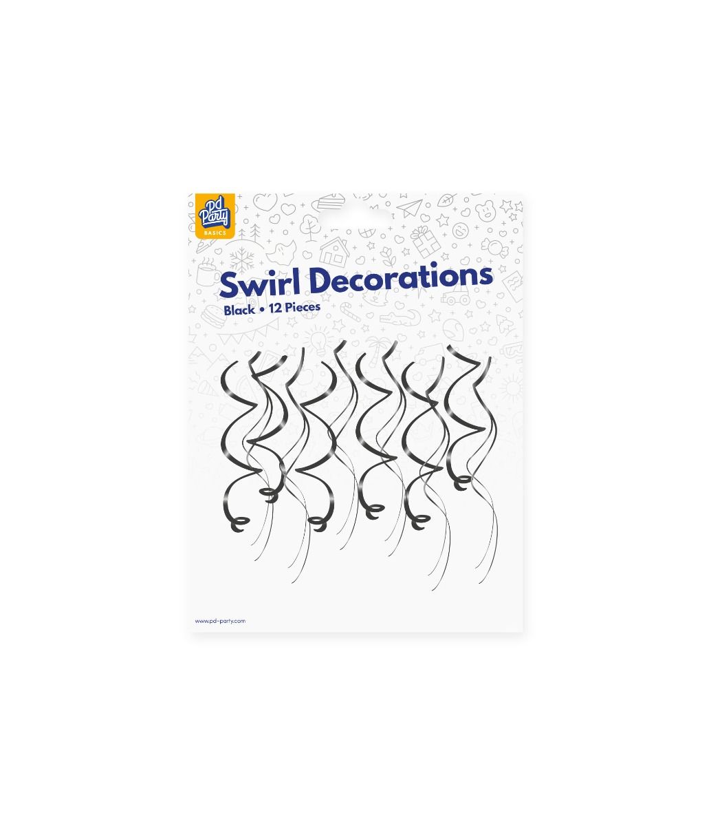 Swirl-dekorationerne - sort er den perfekte tilføjelse til enhver type fest. På grund af den sorte farve er disse swirls også perfekte at kombinere med vores andre festdekorationer, som f.eks. flag, balloner og festtæpper. Der er 12 individuelle swirls i en pakke.