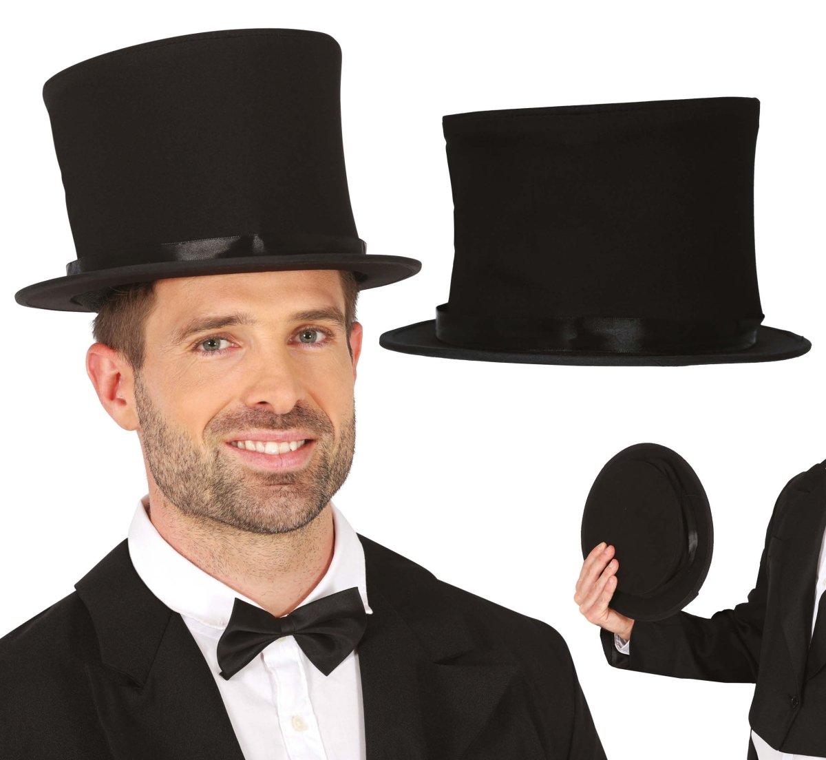 Sort høj hat foldbar 21 cm