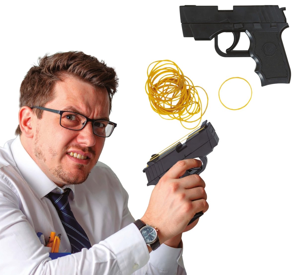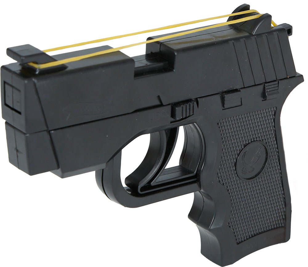 Sort falsk pistol-elastik 17 cm