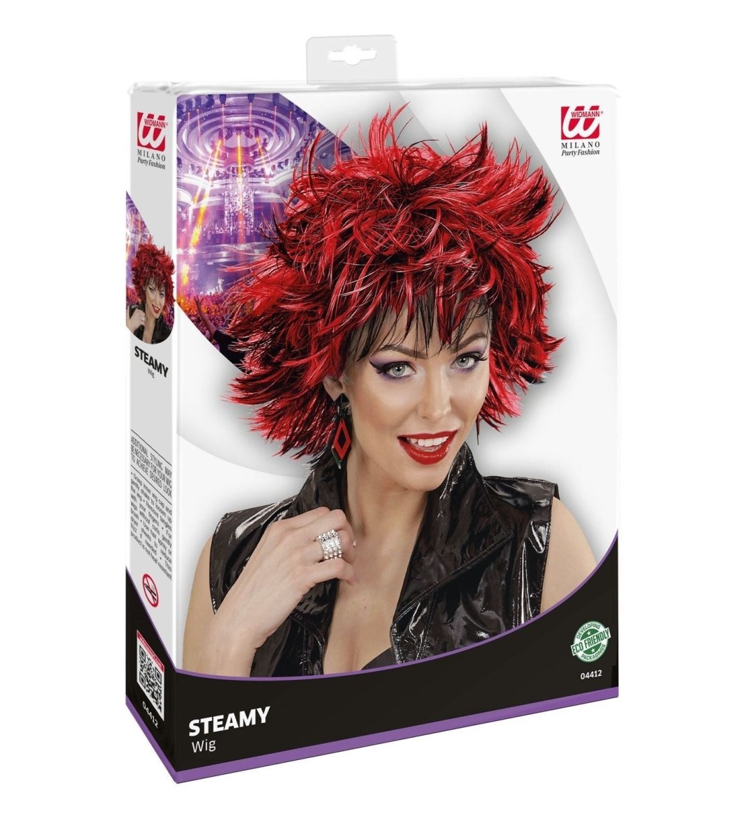 Beskrivelse Anmeldelser Om dette produkt Beskrivelse: sort-rød dampende paryk i æskeMateriale: 100% polyesterVaskeanvisning: håndvask, blegning ikke tilladt, må ikke tørretumbles, må ikke stryges, må ikke renses Trustpilot