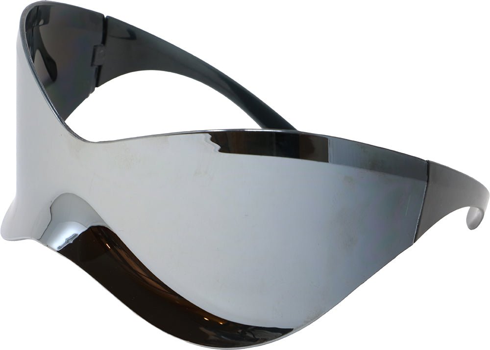 Giv dit look et moderne og dristigt udtryk med disse futuristiske spejlsolbriller. Det sorte stel med sølvspejleffekt gør disse briller ideelle til fester, festivaler eller iøjnefaldende street style.