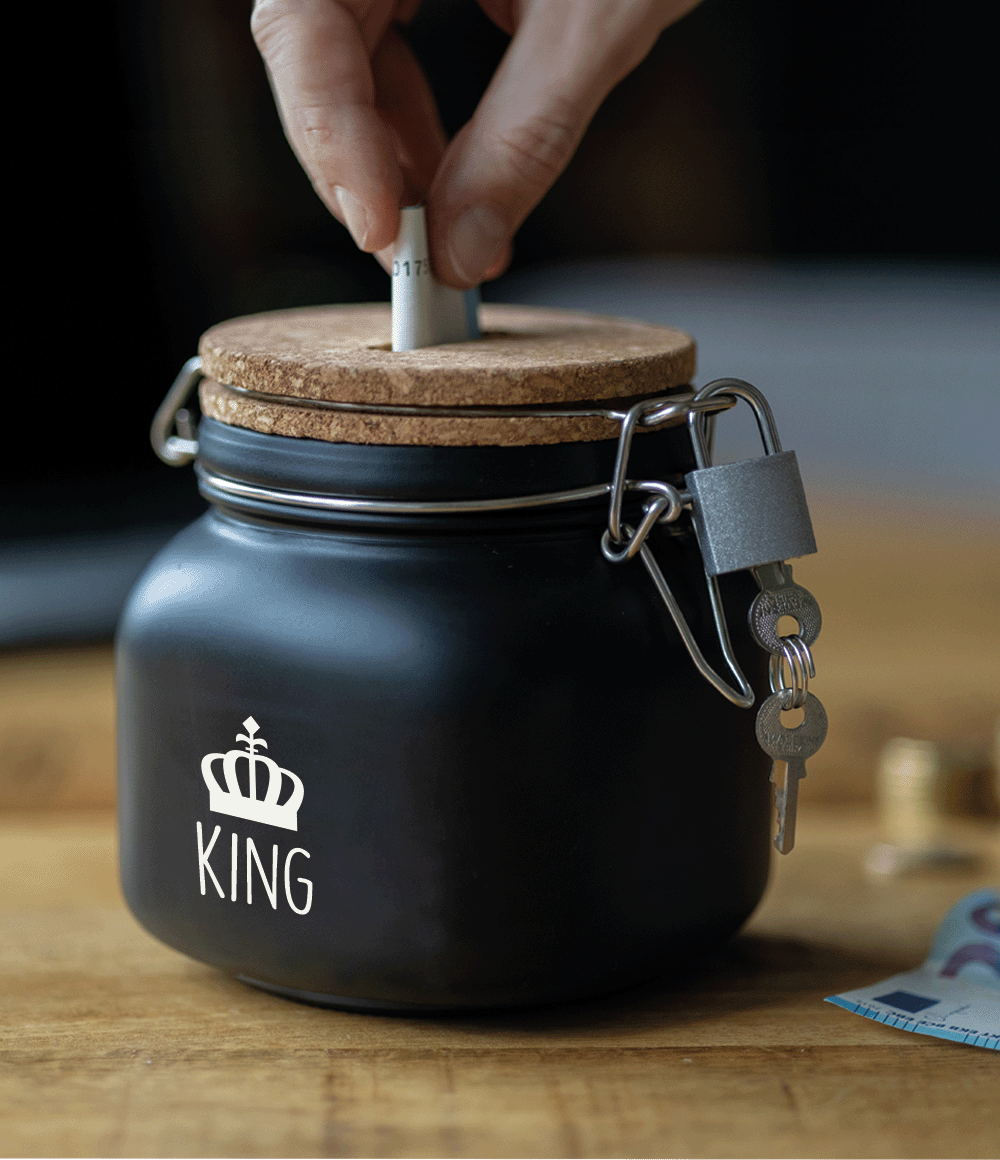 Sort sparebøsse King 12,5 cm