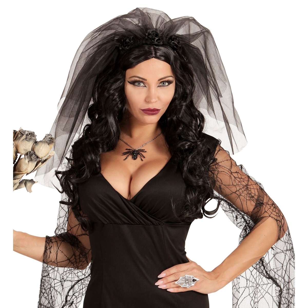 Sort slør med blomster