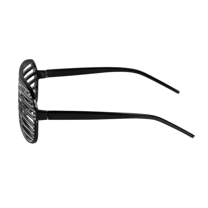 Disse seje shutter-partybriller er perfekte til festivalgængere, festaber og 90'er-fanatikere. De sorte lamelpartybriller er dekoreret med glittersten, der giver lidt glamour til et sjovt retro-90'er-outfit til karneval, en bad taste-fest eller en udklædningsfest.