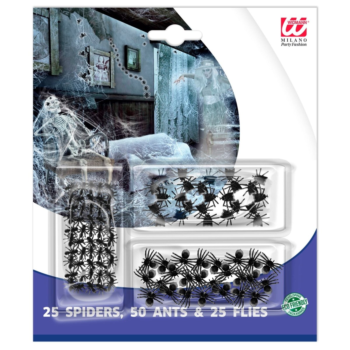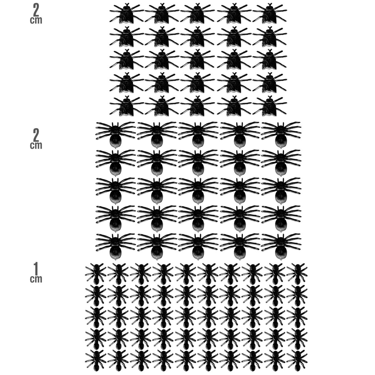 Pakkens indhold: 25 edderkopper, 50 myrer, 25 fluer