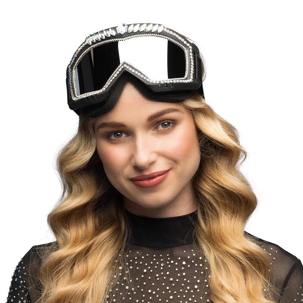 Denne unikke sorte party-skibrille er det perfekte tilbehør til alle festaber, der kan lide at være i rampelyset. Det sporty design kombineret med de skinnende sten gør disse smukke party goggles til et must-have til ethvert festival- eller festoutfit.