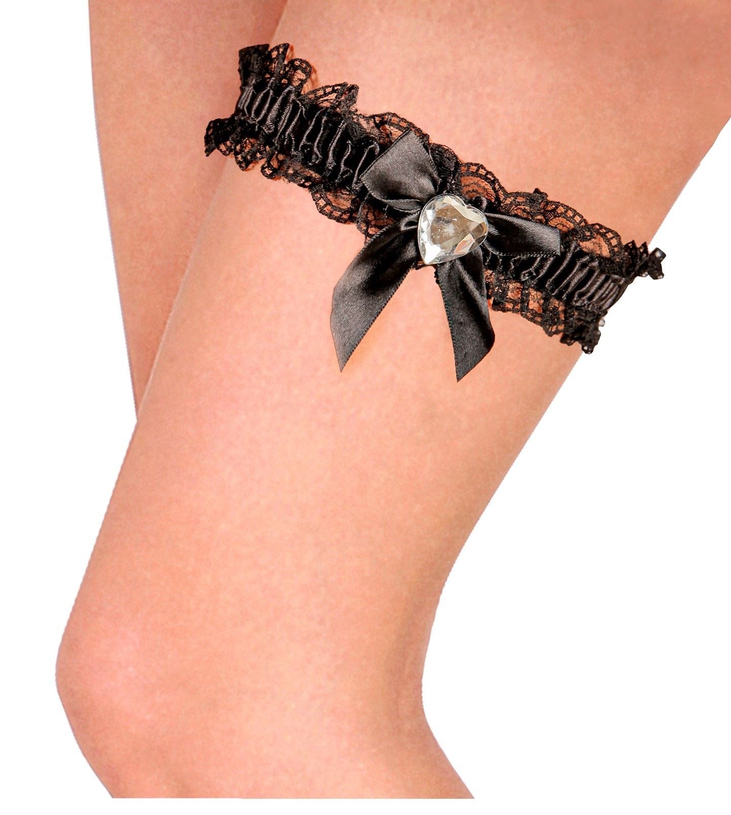 Sorte strømpebånd med diamanthjerte