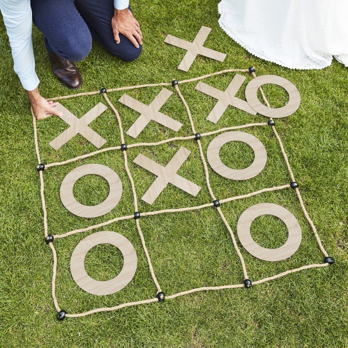 Tag det sjove med udenfor med dette klassiske spil med kæmpe nuller og krydser udenfor - hold de små i gang med nogle udendørs bryllupsspil.