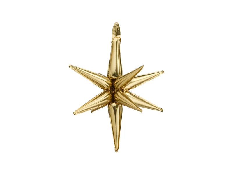 Folieballon 3D-stjerne i guld, størrelse før opblæsning ca. 53 x 62 cm (21 x 24''), størrelse efter opblæsning ca. 50 cm (20''). Pustes op med luft. Sættet indeholder sugerør.