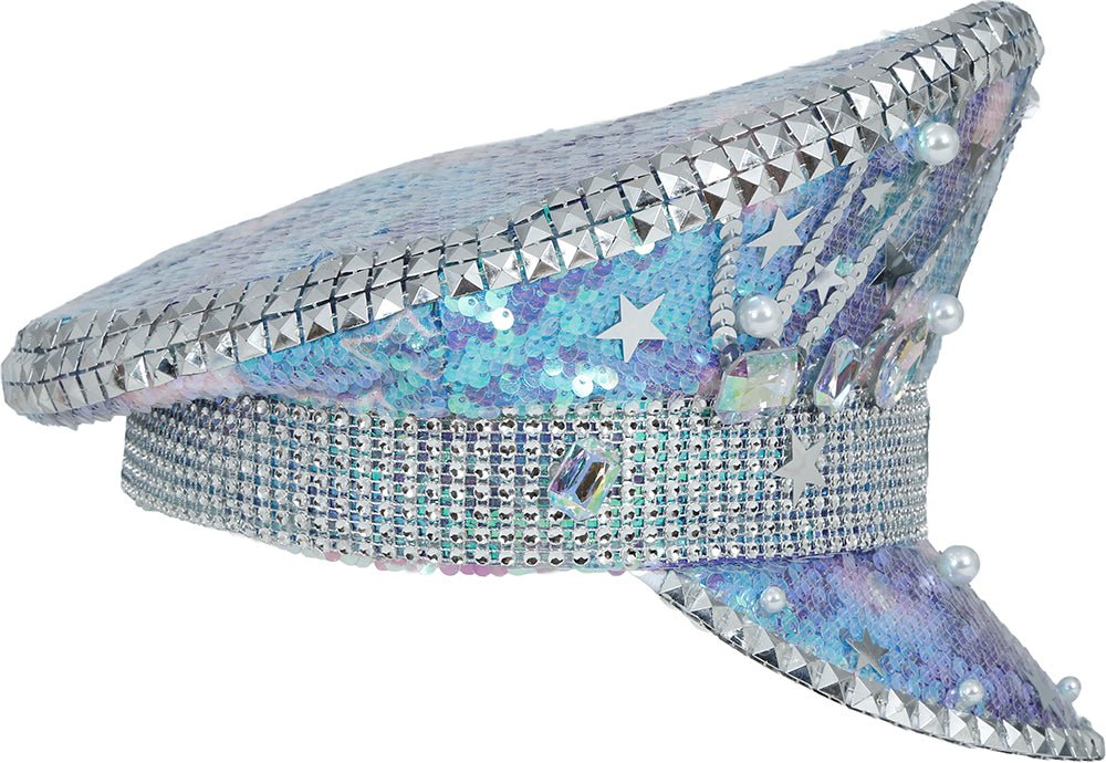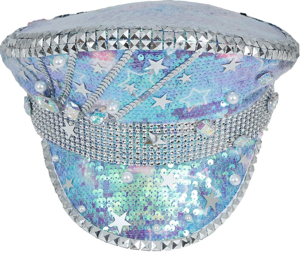 Fuldend dit look med denne stilfulde blå politikasket med dekorative perler. En slående kombination af elegance og hårdhed, ideel til fester og temaaftener.