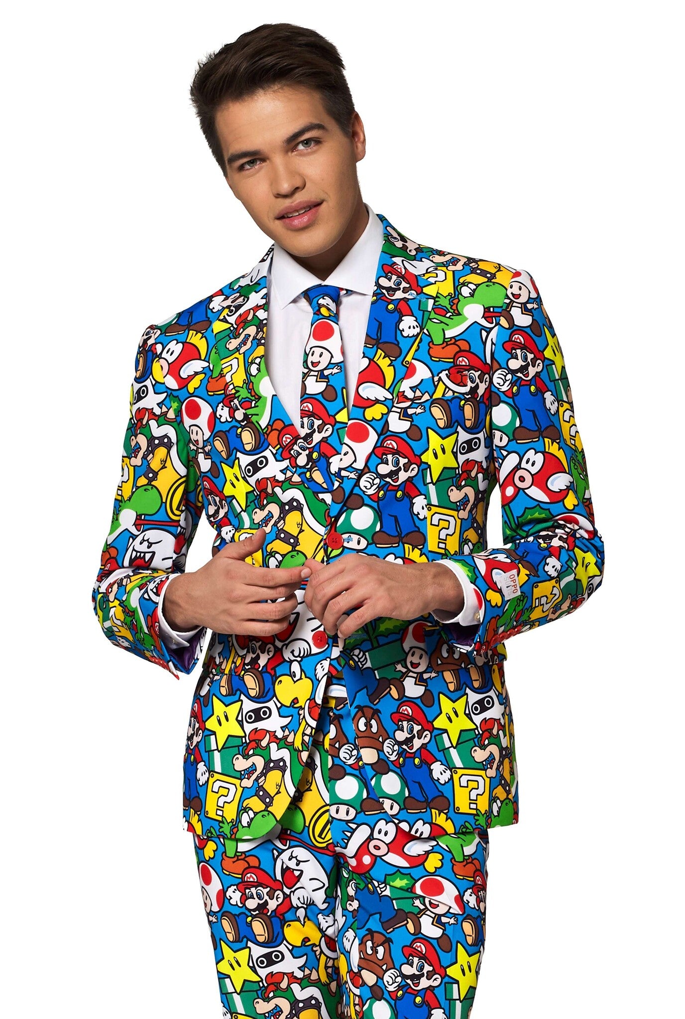 Siger dine brødre: "Undskyld, men din sans for mode er i et andet slot"? Lad os se det i øjnene: Måske har du bare brug for at styrke din garderobe med dette Super Mario™-sæt. Takket være det farverige print med alle de ikoniske figurer fra Mushroom Kingdom vil du alligevel være en vinder, når du har den på!