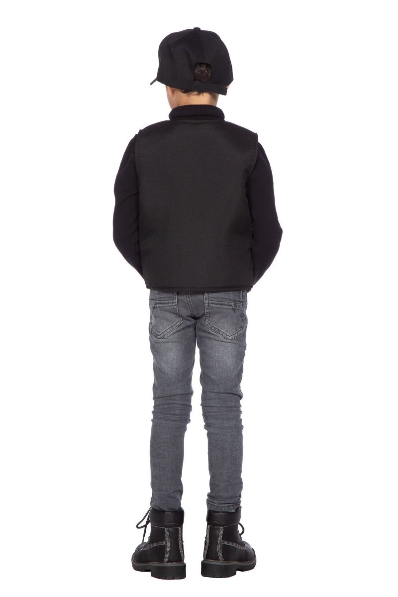 Robust sort SWAT-vest til drenge, ideel til udklædningsfester eller temabegivenheder.