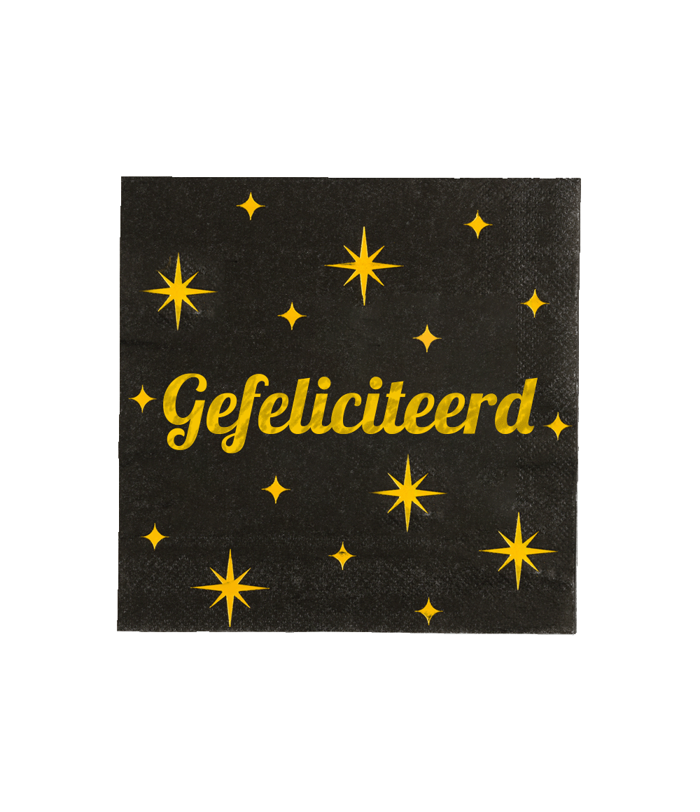 Happy Birthday Servietter Guld Sorte Stjerner 19cm 16stk