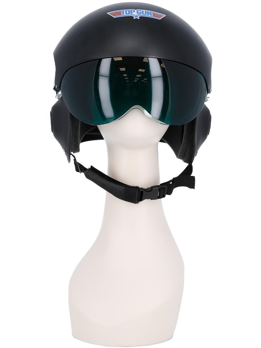 Fuldend dit aviator-look med denne sorte Top Gun Deluxe-hjelm! Med justerbart visir og hagerem for ekstra komfort og sikkerhed. Ideel til temafester, cosplay eller som tilbehør til dit Top Gun-kostume.