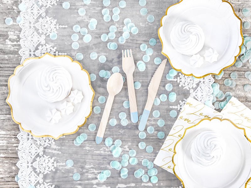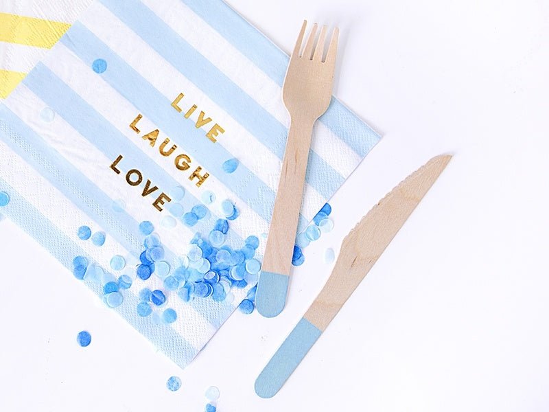 Træbestik lyseblå 16 cm 18 dele