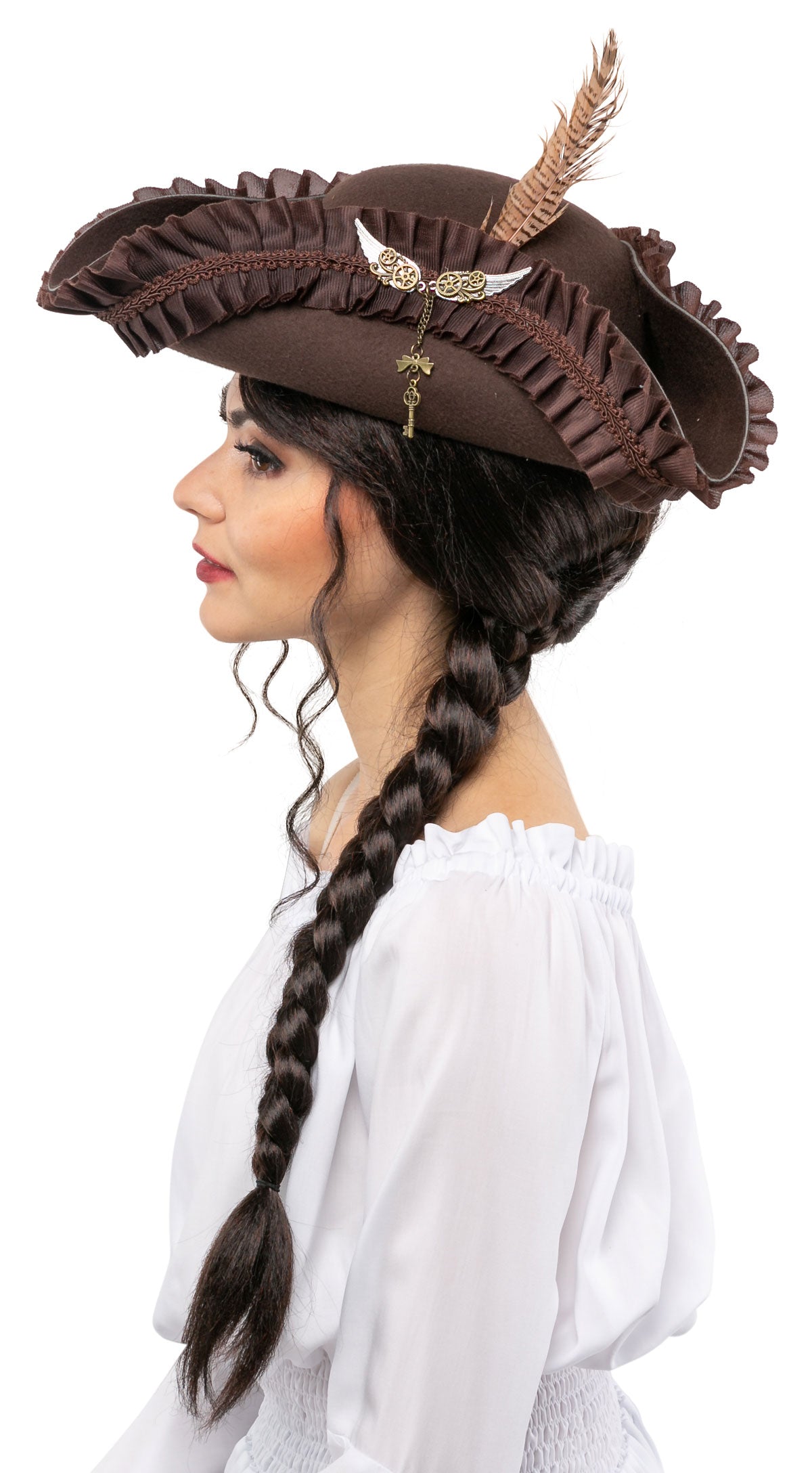 Three-spot O'Malley brown Driespits hoed Colour: brown Materiale: 100% polyester Los accessoire Ideel til udklædningsfester, temafester, karnevaler eller historiske kostumer Giver et klassisk og autentisk look Perfekt som supplement til et pirat- eller historisk kostume.