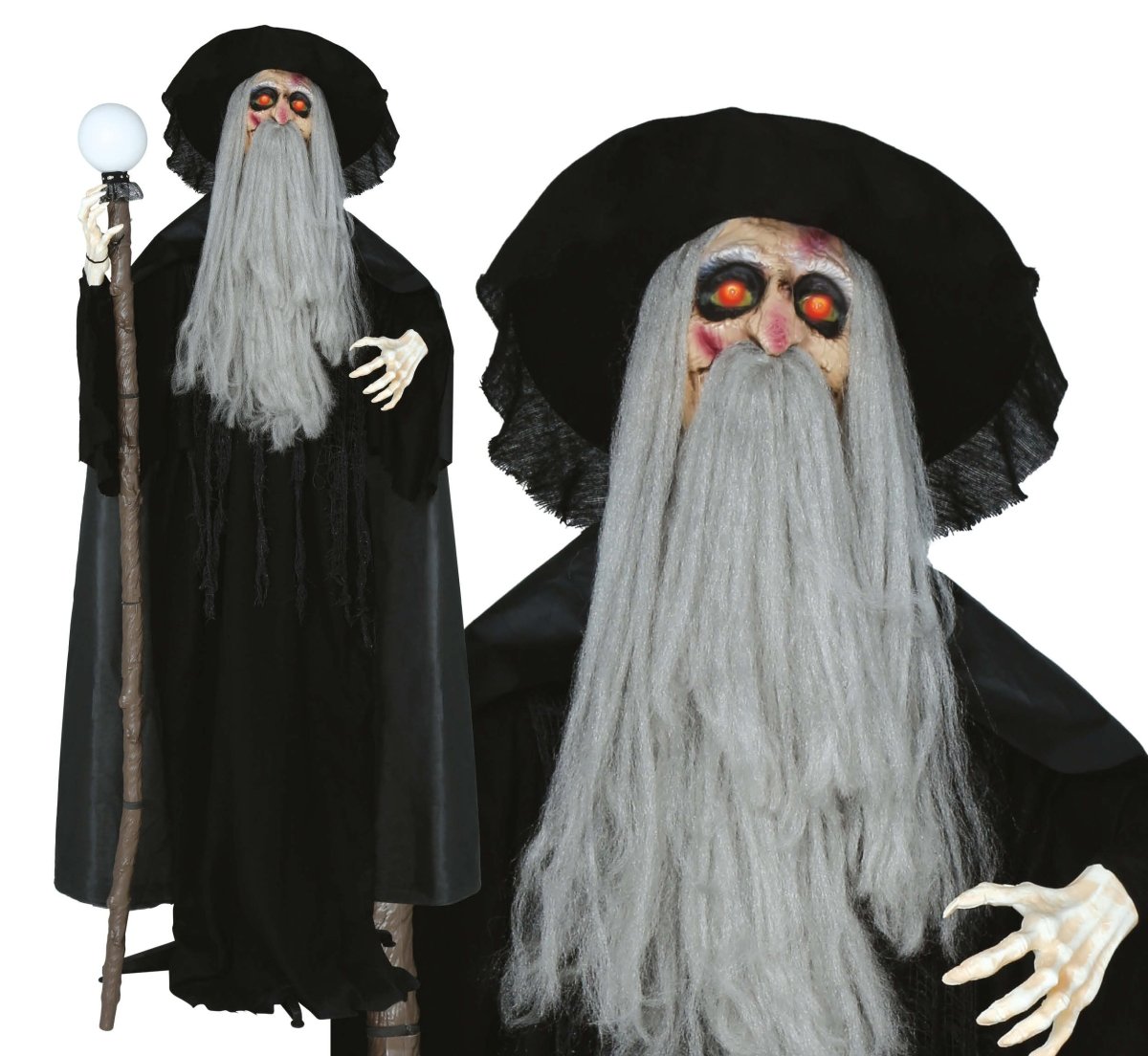 Beskrivelse Anmeldelser Om dette produkt Sæt et uhyggeligt og ikonisk præg på din halloween-dekoration med denne 1,9 meter lange troldmandsdukke med lys, lyd og bevægelse. Perfekt til at skabe en uhyggelig atmosfære til halloweenfester, hjemsøgte huse eller derhjemme. Product features: Indhold:Troldmand med lys, lyd og bevægelse Størrelse: 1,9 m Materiale: Metal, polyester, PVC Batterier: AA (3 stk, medfølger ikke) Trustpilot