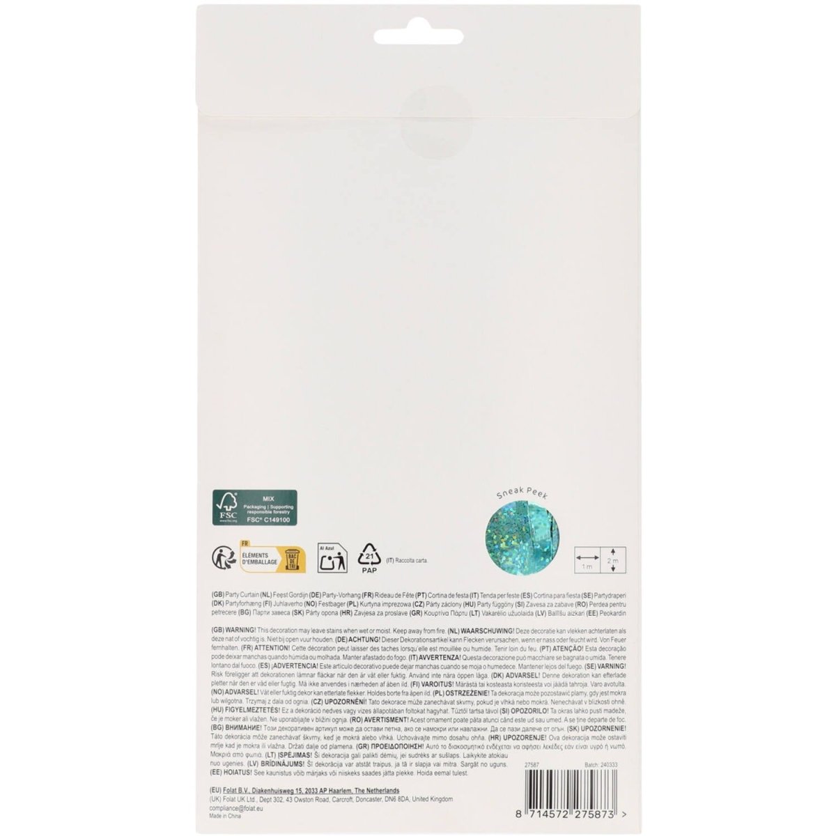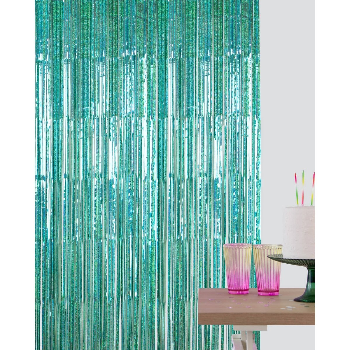 Glimtende iriserende! Partytæppe - Sparkling Turquoise - 1 x 2 m. Indhold: 1 festtæppe. Kan f.eks. bruges til følgende fester/anledninger: Fødselsdag, Temafest. Et fortryllende turkis festtæppe med små iriserende prikker. Sjovt som dørforhæng, men også meget velegnet som baggrund for fortryllende fotos. Takket være den praktiske selvklæbende kant er dette festtæppe nemt at hænge op. Dette turkise festtæppe passer perfekt til Mermaid Magic-kollektionen fra