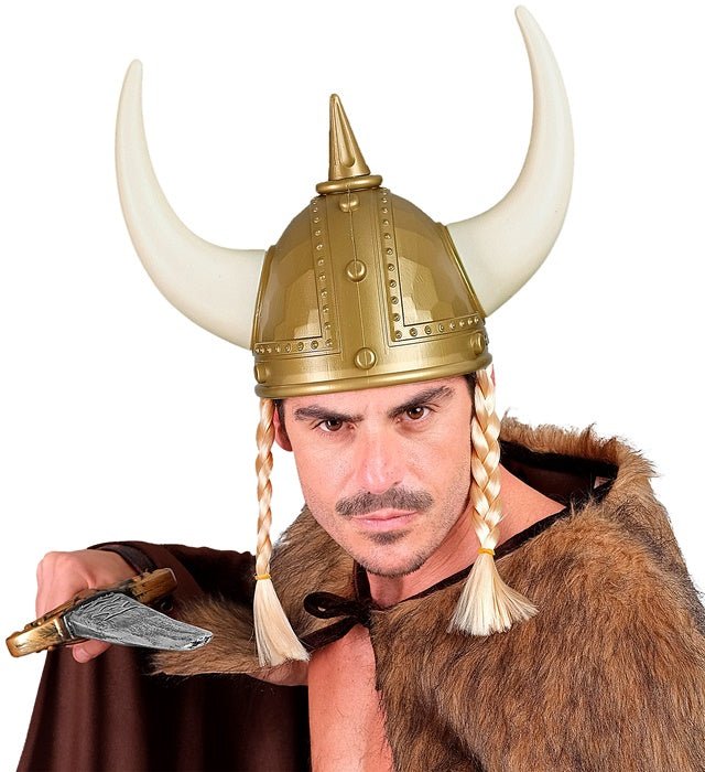 Denne hamrede vikingehjelm med fletninger af hård plast er et komplet tilbehør til kostume- eller temaformål.