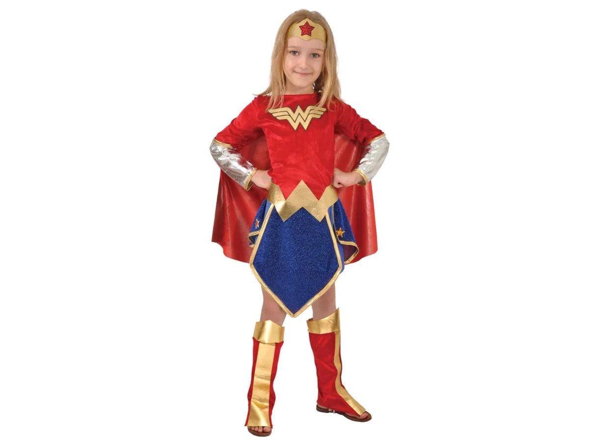 Lad børnene forvandle sig til den magtfulde heltinde Wonder Woman med dette komplette kostume, der er perfekt til karneval, udklædningsfester og fantasifulde rollelege.