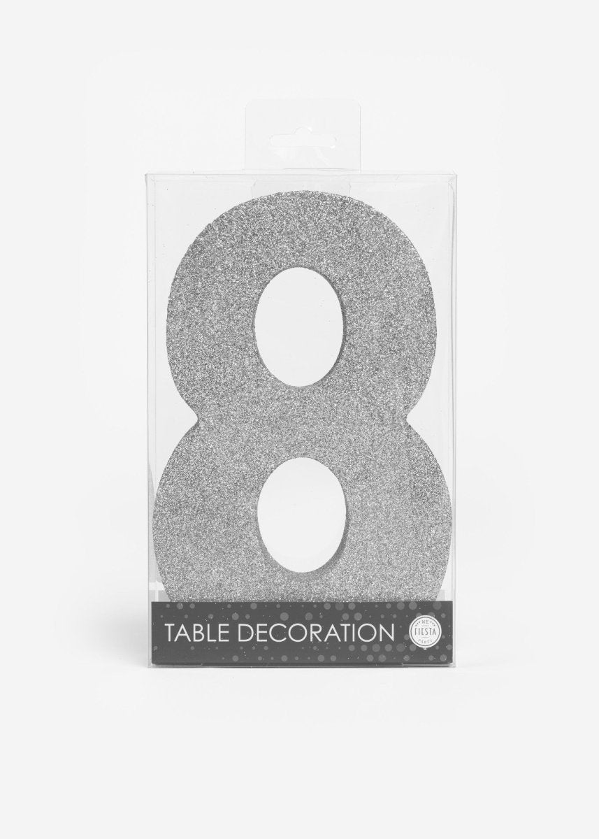 Zilver Tafeldecoratie Cijfer 8 Glitter 20,5cm